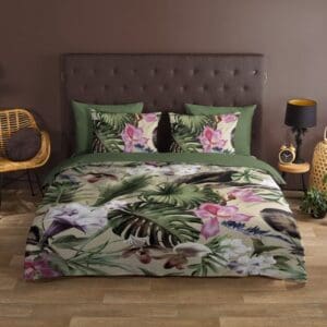 Good Morning Dekbedovertrek bloemen en vogels - 200x200/220 cm - Katoen