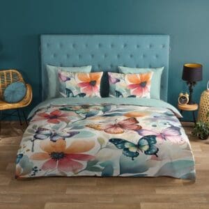 Good Morning Dekbedovertrek bloemen en vlinders - Multi - 200x200/220 cm - Katoen