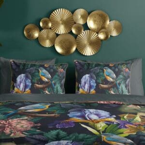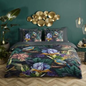 Descanso Dekbedovertrek bloemen en vogels Antraciet - 200x200/220 cm - Katoen Satijn