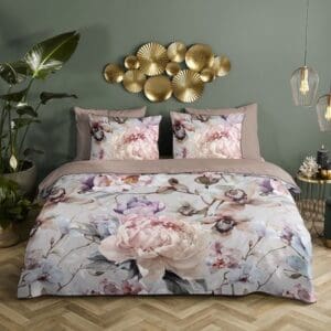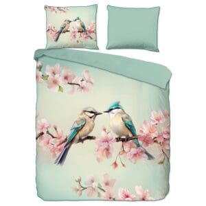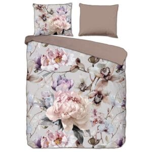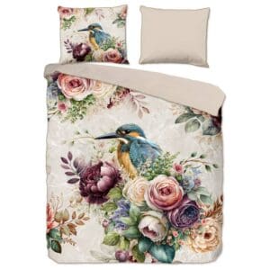 Descanso Dekbedovertrek bloemen en vogels - Zand - 200x200/220 cm - Katoen Satijn