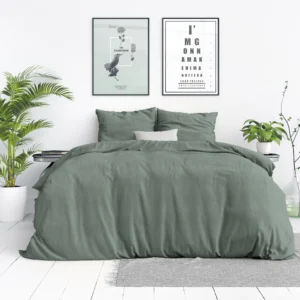 Dreamhouse Dekbedovertrek Stone Washed Donker Groen - 200x200/220 cm