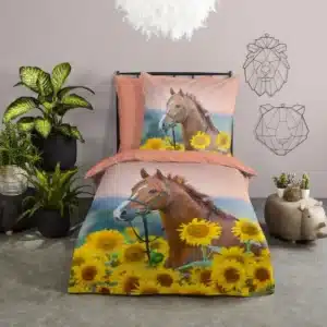 • Droomtextiel Kinderdekbedovertrek Paard Summer Beauty  140x200/220cm - 100% Zacht Katoen