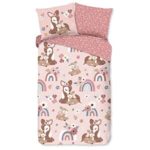 Good Morning Kinderdekbedovertrek bambi hert met regenboog - Roze - 140x200/220 cm - Katoen
