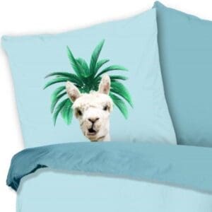 Droomtextiel Dekbedovertrek Kinderen Palm Lama Blauw - 140x200/220cm - 100% Zacht Katoen
