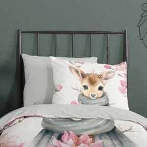 • Kinder dekbedovertrek met schattige vos en bloemenpatroon.
