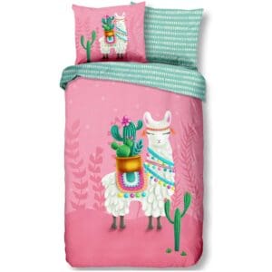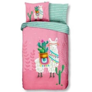 Good Morning Kinderdekbedovertrek Lalama Roze Eenpersoons 140x200/220 cm - 100% Katoen