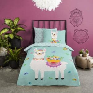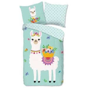 Good Morning Kinderdekbedovertrek Llama Mint Eenpersoons 140x200/220 cm