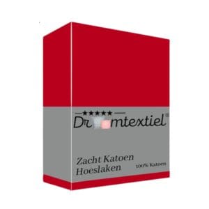 Droomtextiel Zacht Katoenen Hoeslaken Rood 90x200 cm - Hoge Hoek - Perfecte Pasvorm - Heerlijk Zacht