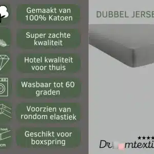 Droomtextiel Dubbel Jersey Hoeslaken Grijs Tweepersoons 140x200 cm - 100% Katoen - Hoge Hoek - Heerlijk Zacht - Strijkvrij - Rondom elastiek - Stretch - Dubbel Dikke Kwaliteit