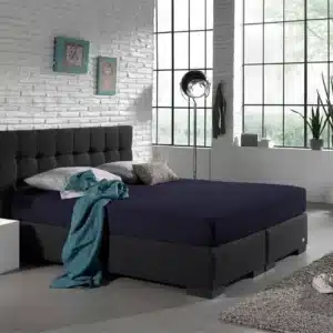 Droomtextiel Dubbel Jersey Hoeslaken Navy Blauw Lits-Jumeaux 180x200 cm - 100% Katoen - Hoge Hoek - Heerlijk Zacht - Strijkvrij - Rondom elastiek - Stretch - Dubbel Dikke Kwaliteit
