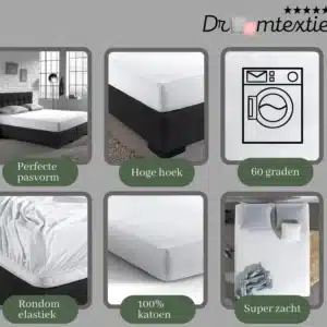 Droomtextiel Dubbel Jersey Hoeslaken Wit Eenpersoons 90x200 cm 100% Katoen - Hoge Hoek - Heerlijk Zacht - Strijkvrij - Rondom elastiek - Stretch - Dubbel Dikke Kwaliteit -