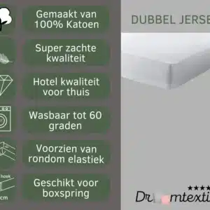 Droomtextiel Dubbel Jersey Hoeslaken Wit Tweepersoons 140x200 cm - 100% Katoen - Hoge Hoek - Heerlijk Zacht -Strijkvrij - Rondom elastiek - Stretch - Dubbel Dikke Kwaliteit