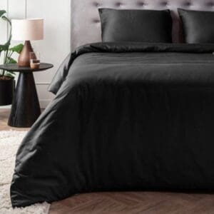 Droomtextiel Dekbedovertrek Katoen-Satijn Uni Zwart -140x200/220cm - Hoogwaardige Kwaliteit Super Zacht