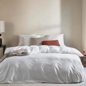 Droomtextiel Dekbedovertrek Katoen-Satijn Uni Wit - 140x200/220cm - Hoogwaardige Kwaliteit Super Zacht
