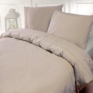Luxe Percale Katoen Dekbedovertrek Zand Eenpersoons 140x200/220 cm - Zeer Hoogwaardige Kwaliteit - Super Zacht