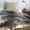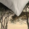 Het Ambiante Nature dekbedovertrek is een ode aan de betoverende landschappen van Italië. Met zijn prachtige print van groene pijnbomen op een verfijnde blauw- en zandkleurige achtergrond tover je je slaapplek om tot een rustgevende oase. De afbeelding loopt naadloos door op de bijpassende kussenslopen, zodat je bed er in één oogopslag als een harmonieus geheel uitziet.