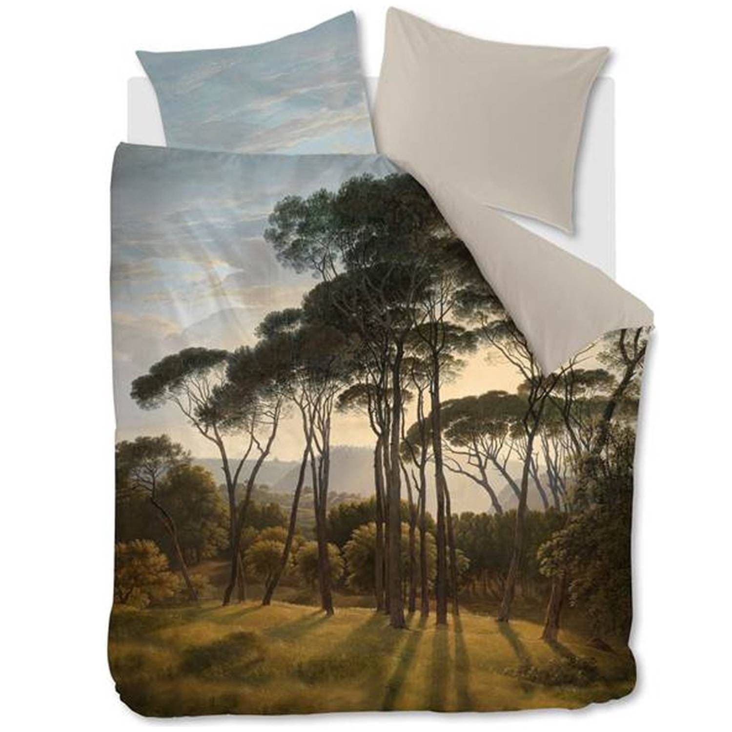 - Ambiante Nature dekbedovertrek: Italiaans landschap-of effen zandkleur aan de achterkant.