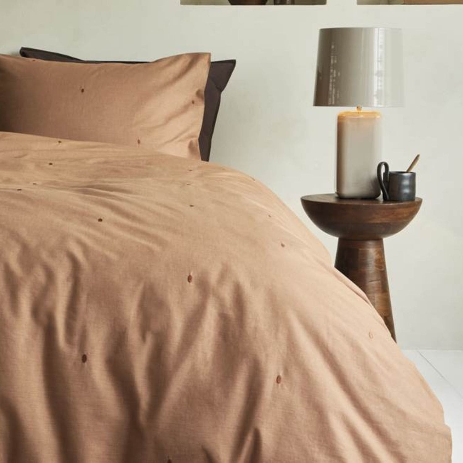 Creëer een warme en sfeervolle slaapkamer met het Beddinghouse Monsoon dekbedovertrek. De lichte terratint straalt rust en gezelligheid uit en helpt je iedere avond ontspannen. Het subtiele uni dessin wordt verrijkt door geborduurde stipjes, die zorgen voor een luxe uitstraling en het overtrek net dat beetje extra geven. Dankzij het minimalistische design past dit dekbedovertrek perfect in een Scandinavische of moderne slaapkamer.