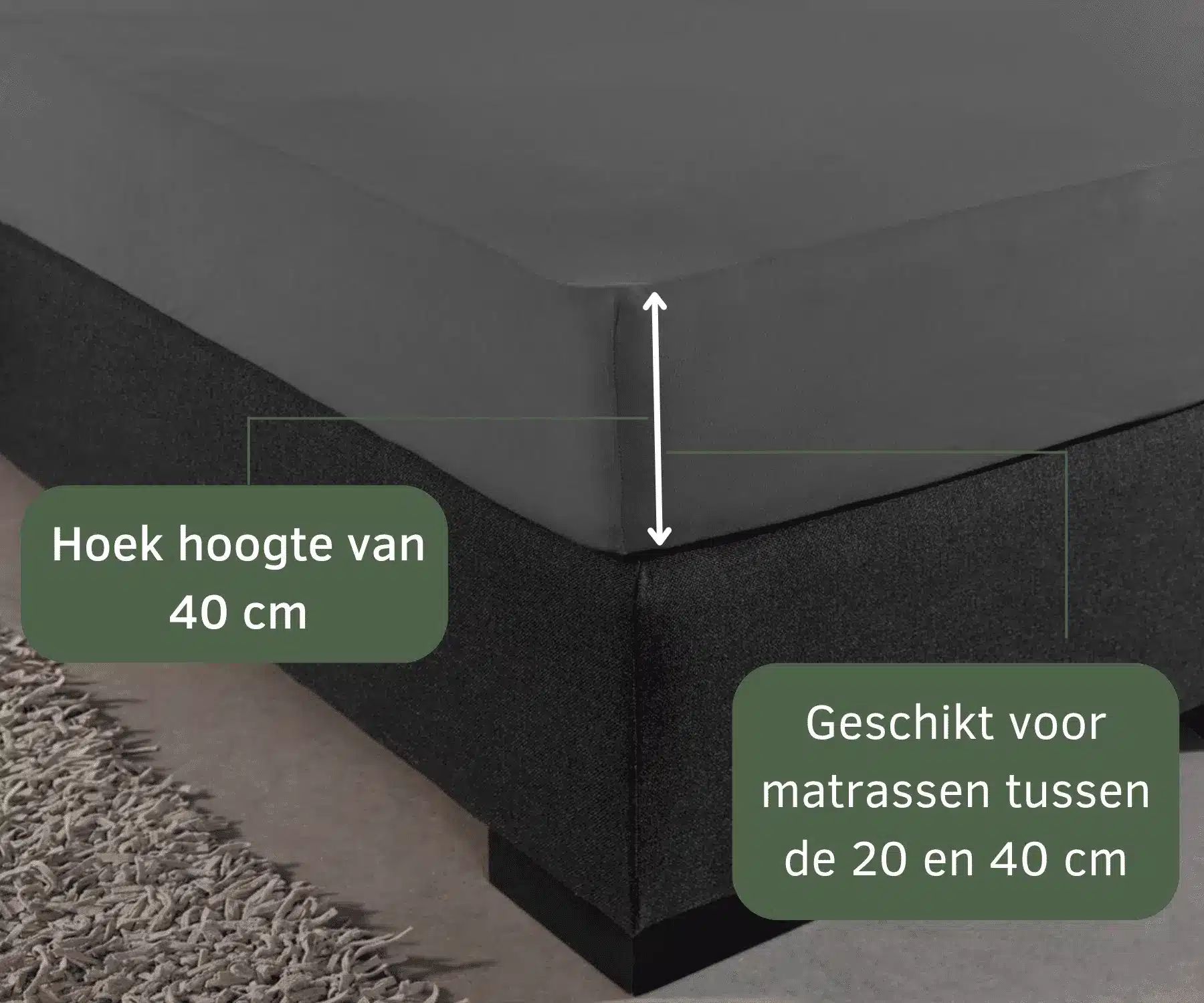 - Hoekhoogte 40 cm: sluit perfect aan, ook op hoge matrassen en boxsprings