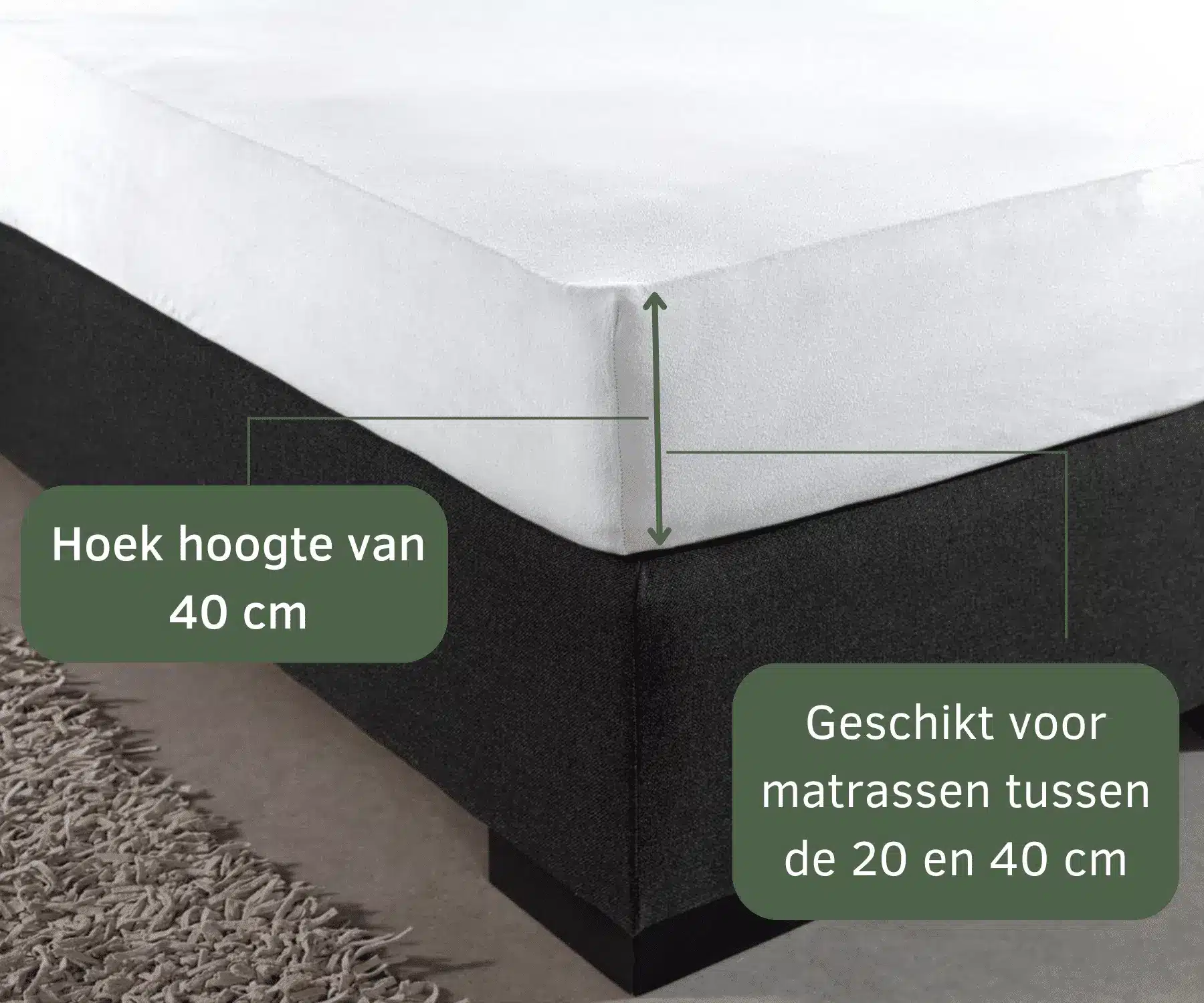 • Hoekhoogte: 40 cm met rondom duurzaam elastiek – blijft perfect zitten (ook voor boxspring en waterbed)
