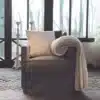 - Op een grijze bank: de zachte, neutrale tint van de plaid brengt balans en luxe.