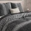 Het dekbedovertrek heeft een gebreid motief in warme, natuurlijke tinten dat direct sfeer geeft aan je slaapkamer. De bijpassende kussenslopen zijn voorzien van hetzelfde patroon, waardoor het geheel een luxe en complete uitstraling krijgt.