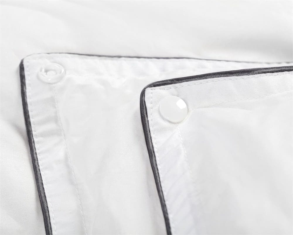 Leg de delen op elkaar, druk de knopen eenvoudig vast en je hebt binnen enkele seconden één dik winterdekbed of twee losse delen voor de zomer en herfst.