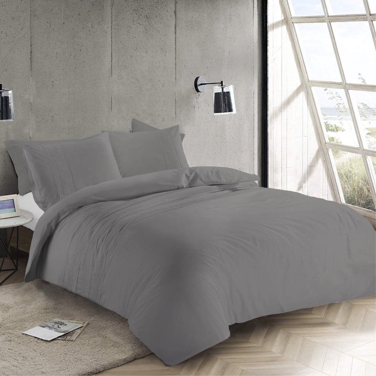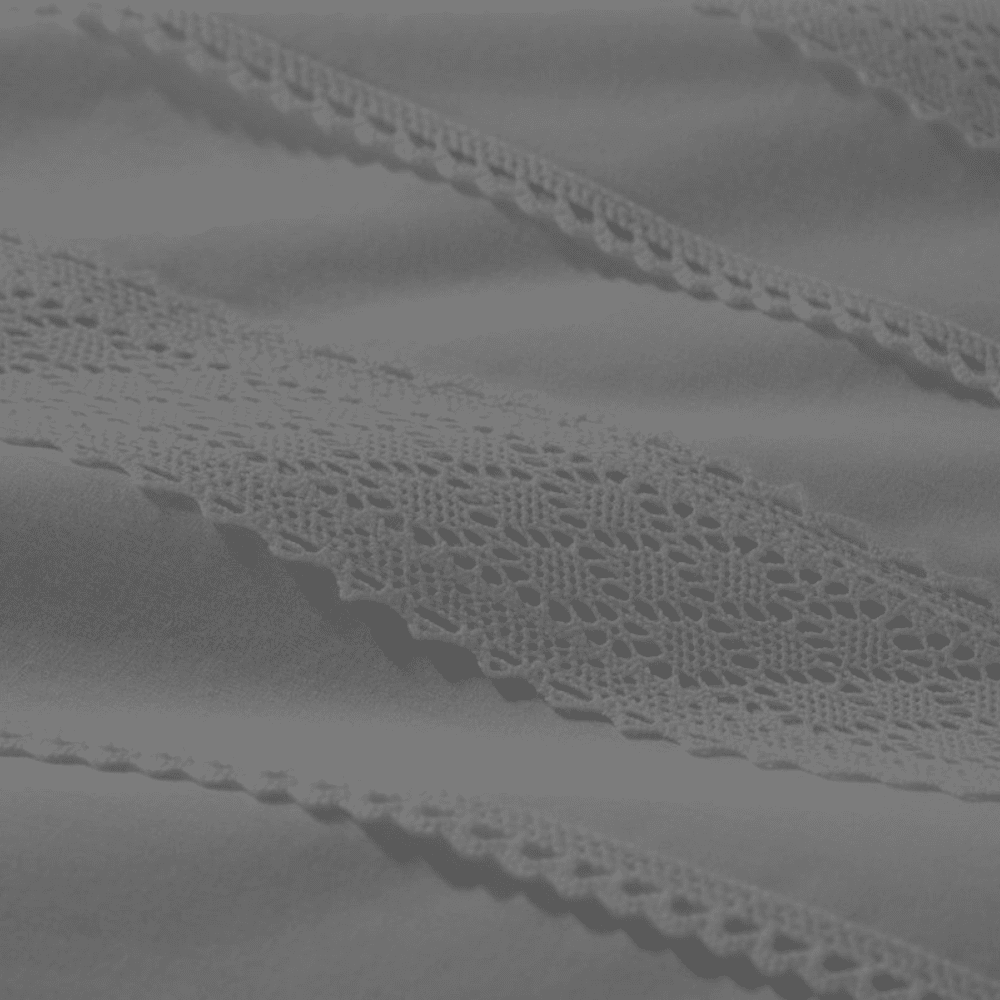 | Borduurwerk | Delicaat kantborduursel op dekbedovertrek en kussenslopen |