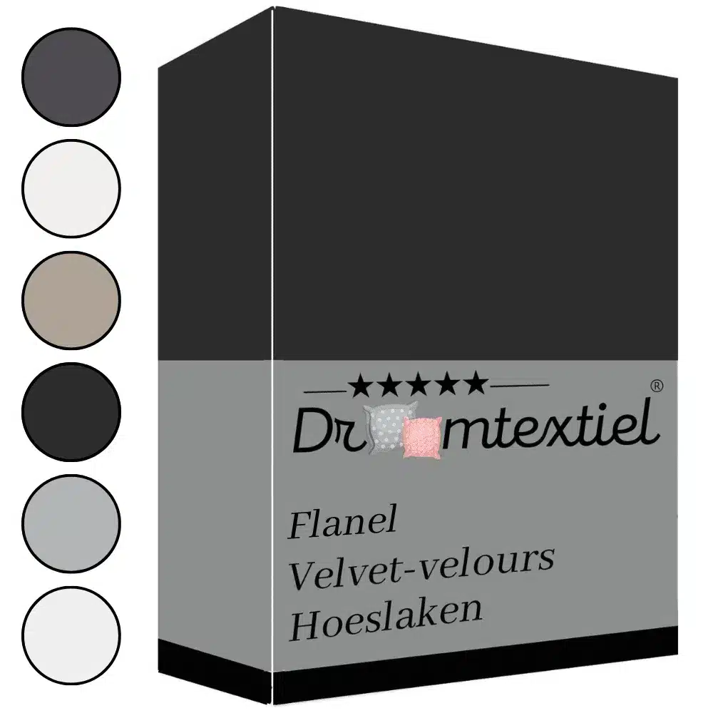 Met het Flanel velvet velours hoeslaken van Droomtextiel kies je voor luxe, comfort en betrouwbaarheid. De hoogwaardige velvet polyester stof is fluweelzacht, warm en duurzaam. Dankzij de perfecte pasvorm en het elastiek rondom blijft het hoeslaken de hele nacht op zijn plek. Onderhoud is kinderspel: strijkvrij, wasbaar op 40 °C en geschikt voor de droger. Bovendien geniet je van 2 jaar fabrieksgarantie.