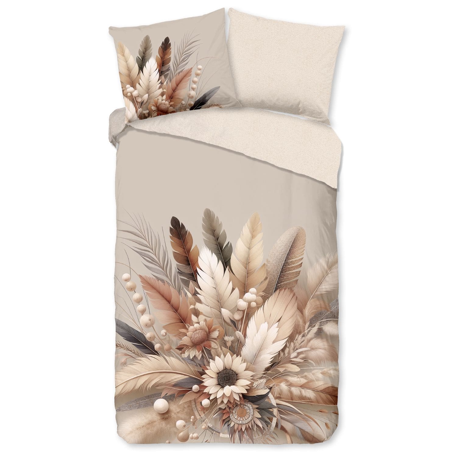 Het Good Morning Barro dekbedovertrek brengt een warme en sfeervolle uitstraling in de slaapkamer. De print van elegante pluimen en bloemen in natuurlijke tinten zoals beige, bruin en crème geeft een chique en rustgevende look. Perfect voor wie houdt van een moderne, maar toch knusse en natuurlijke inrichting.