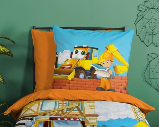 Kinderdekbedovertrek “Building” van Good Morning met graafmachine, in de kleur “Multi” is gemaakt van 100% katoen. Deze kwaliteit is ademend, vochtabsorberend en voelt zacht en soepel aan. Dit leuke kinderdekbedovertrek is een toevoeging aan iedere kinderkamer en is geschikt voor ieder jaargetijde. Het katoenen dekbedovertrek is heerlijk koel in de zomer en geeft warmte in de winter.