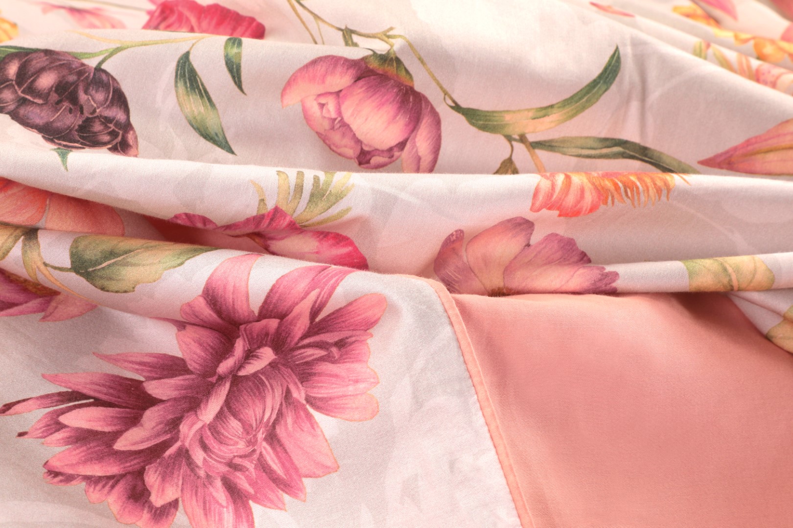 Combineer de bloemenprint met een effen hoeslaken in katoen-satijn voor hotelkwaliteit beddengoed. Kies een kleur uit onze collectie die aansluit bij de print—witte, beige of zachte pasteltinten zorgen voor rust.