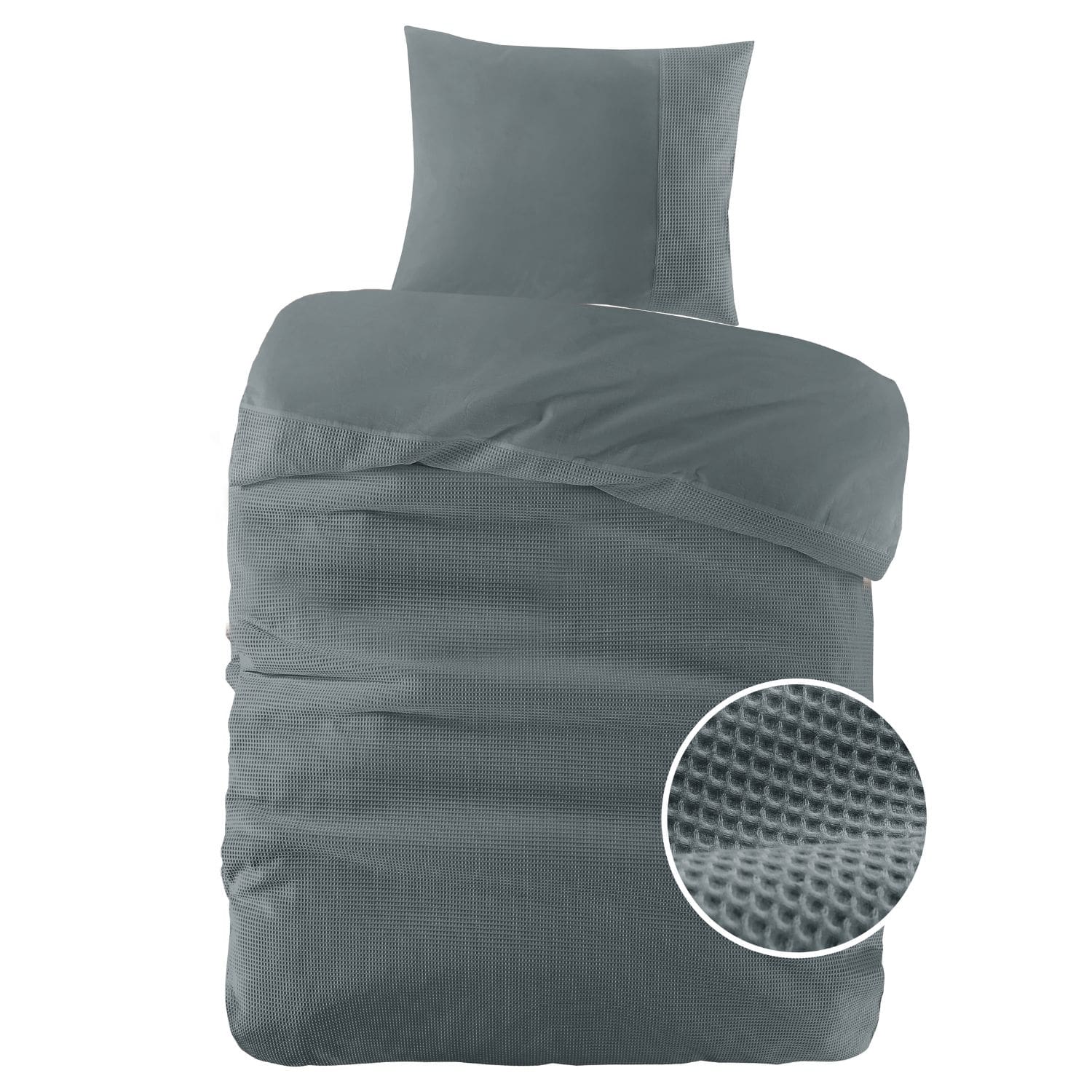 De iconische wafelstructuur op de bovenzijde van het Mendoza dekbedovertrek voegt niet alleen visuele diepte toe, maar geeft ook een subtiel reliëf dat je omhult in comfort. Deze structuur: