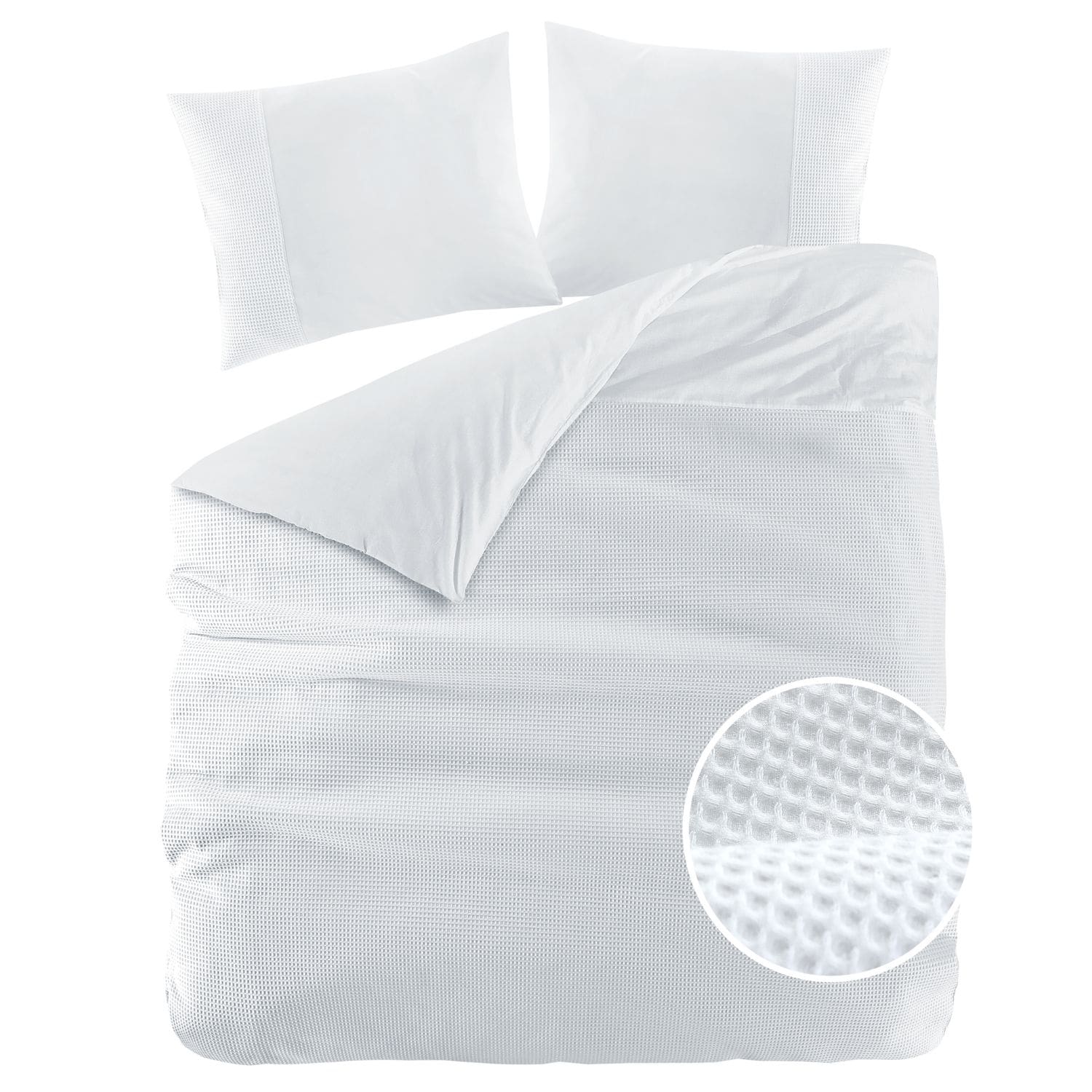 De Papillon Mendoza kussenslopen delen dezelfde wafel- en gladde structuur als het dekbedovertrek. Zo houd je je stijl één geheel.