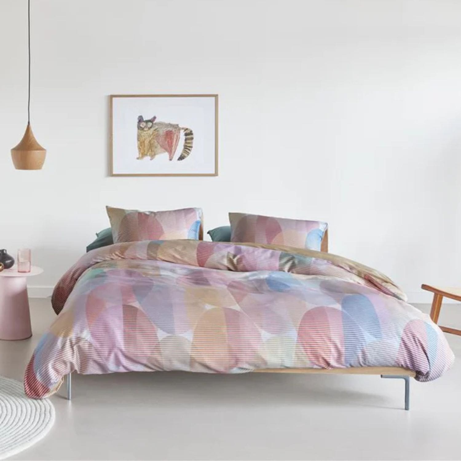 Het dekbedovertrek New Dawn van Beddinghouse Dutch Design is een ware eye-catcher met zijn elegante ovale vormen, die zweven in transparante lagen. De verfijnde strepen en subtiele kleurovergangen geven de print een gevoel van diepte en beweging. Met frisse zachte kleuren zoals roze, blauw, groen, taupe en geel, is dekbedovertrek New Dawn helemaal in lijn met de laatste trends. De achterzijde van het overtrek heeft een rustige, effen zandkleur.Hoogwaardige kwaliteitDit dekbedovertrek is samengesteld uit 70% lyocell en 30% katoensatijn. Lyocell wordt gemaakt van cellulosevezels van beukenbomen en is een duurzame keuze die minder water, bestrijdingsmiddelen en kunstmest vereist. De stof is antibacterieel, vochtabsorberend en temperatuurregulerend, waardoor het overtrek je koel houdt in de zomer en warm in de winter.Extra lange instopstrookHet overtrek heeft een dubbele instopstrook en een totale lengte van 260 cm. Door deze extra lengte kan het dekbedovertrek gemakkelijk onder het matras worden gestopt en is het geschikt voor hoge matrassen. Het dekbedovertrek is passend voor dekbedden van 200 cm, 210 cm of 220 cm.