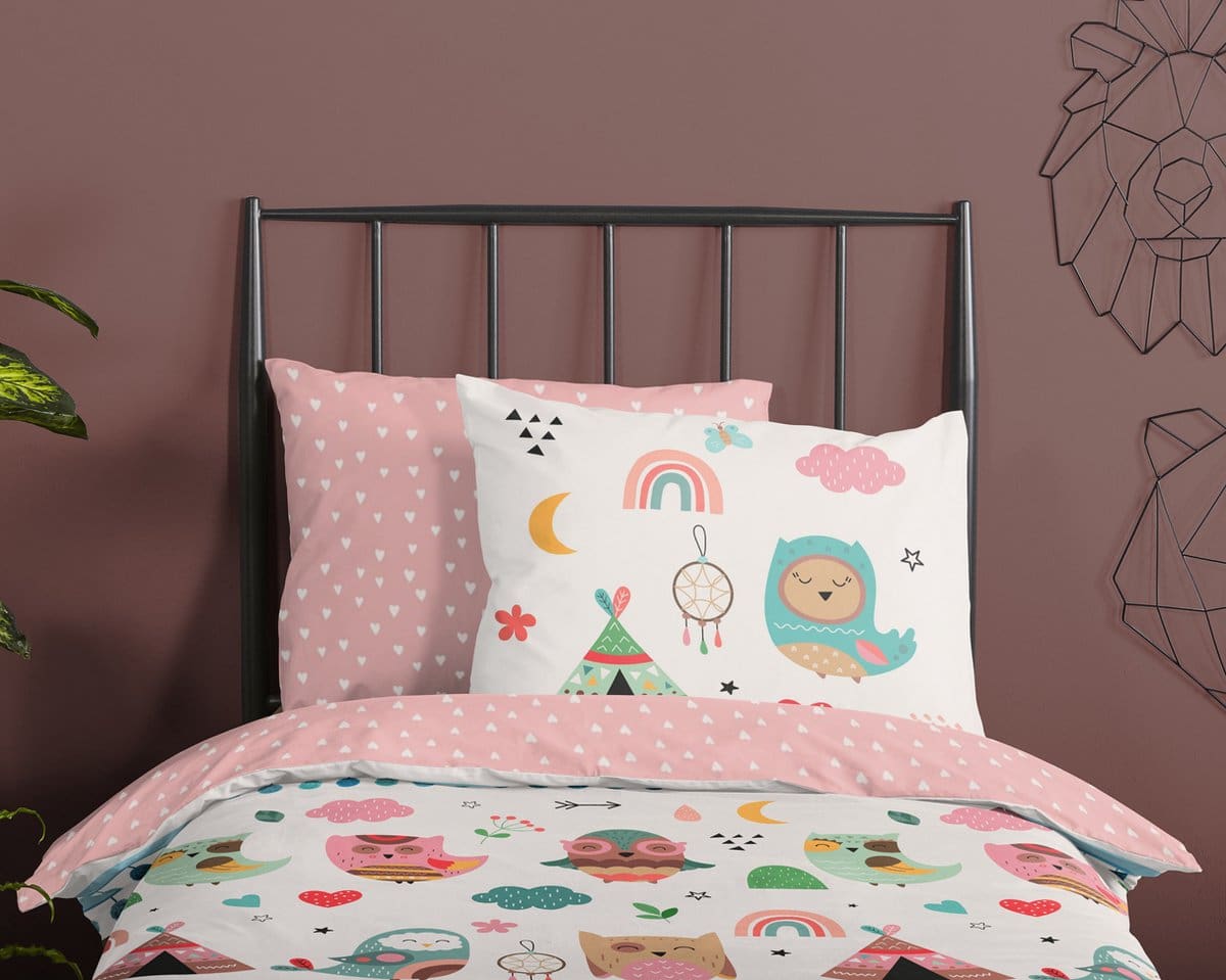 Peuter dekbedovertrek “Wise” van Good Morning met uilen in boho thema, in de kleur “Multi” is gemaakt van 100% katoen. Deze kwaliteit is ademend, vochtabsorberend en voelt zacht en soepel aan. Dit leuke peuter dekbedovertrek is een toevoeging aan iedere peuter/ kinderkamer! Het peuter dekbedovertrek is geschikt voor ieder jaargetijde. Het katoenen dekbedovertrek is heerlijk koel in de zomer en geeft warmte in de winter.