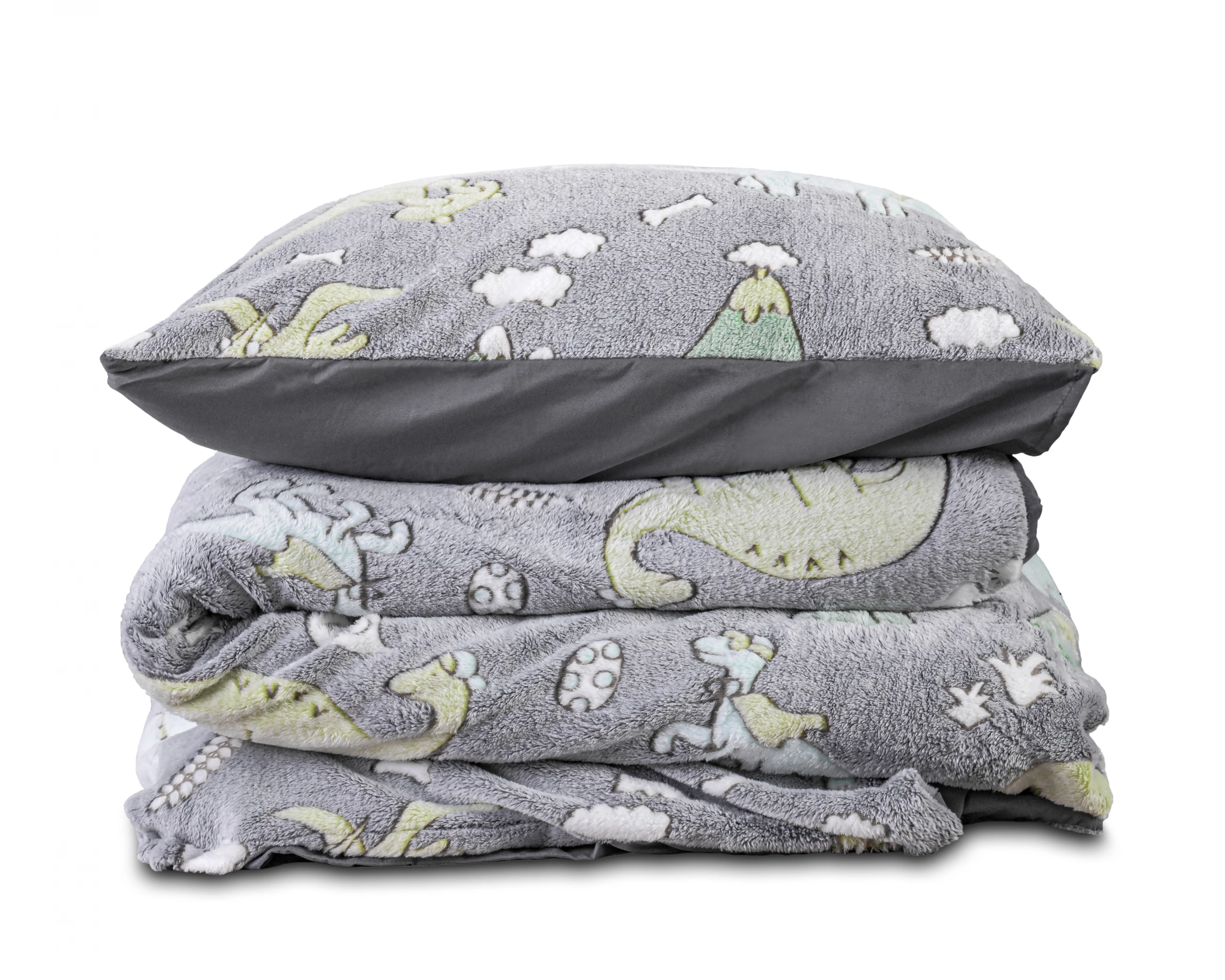 🦖 Droomtextiel Dinosaurs Glow in the Dark Dekbedovertrek – Zacht Teddy Microfleece