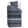 Droom iedere avond heerlijk weg onder het Beddinghouse Fera flanel dekbedovertrek. Het dessin heeft een modern banenpatroon in verschillende blauwe tinten, wat een harmonieuze sfeer in de slaapkamer creëert. Van dichtbij zijn subtiele geometrische details zichtbaar, waardoor het dekbedovertrek eenvoudig in diverse interieurstijlen past, zoals een modern interieur.