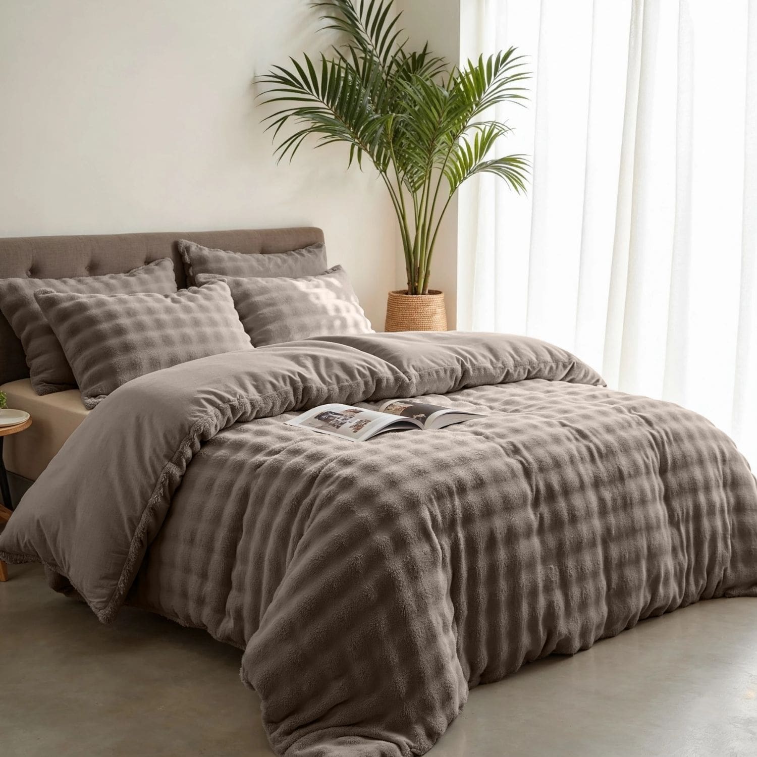 Bij Droomtextiel draait alles om comfort en stijl. Dit teddy flanel dekbedovertrek is ontworpen voor iedereen die houdt van warmte, zachtheid en een vleugje luxe in de slaapkamer. De bovenzijde is uitgevoerd in superzacht teddy flanel met een speels pompom design – een echte sfeermaker die jouw bed omtovert tot een knusse plek om in weg te dromen. De combinatie van teddy flanel en een gladde microfiber onderzijde maakt dit overtrek heerlijk warm en tegelijkertijd ademend. Met zijn stevige gewicht van 360 gsm voelt het extra comfortabel aan, perfect voor de koude herfst- en wintermaanden. Je kruipt er ’s avonds in en wilt er ’s ochtends eigenlijk niet meer onder vandaan.