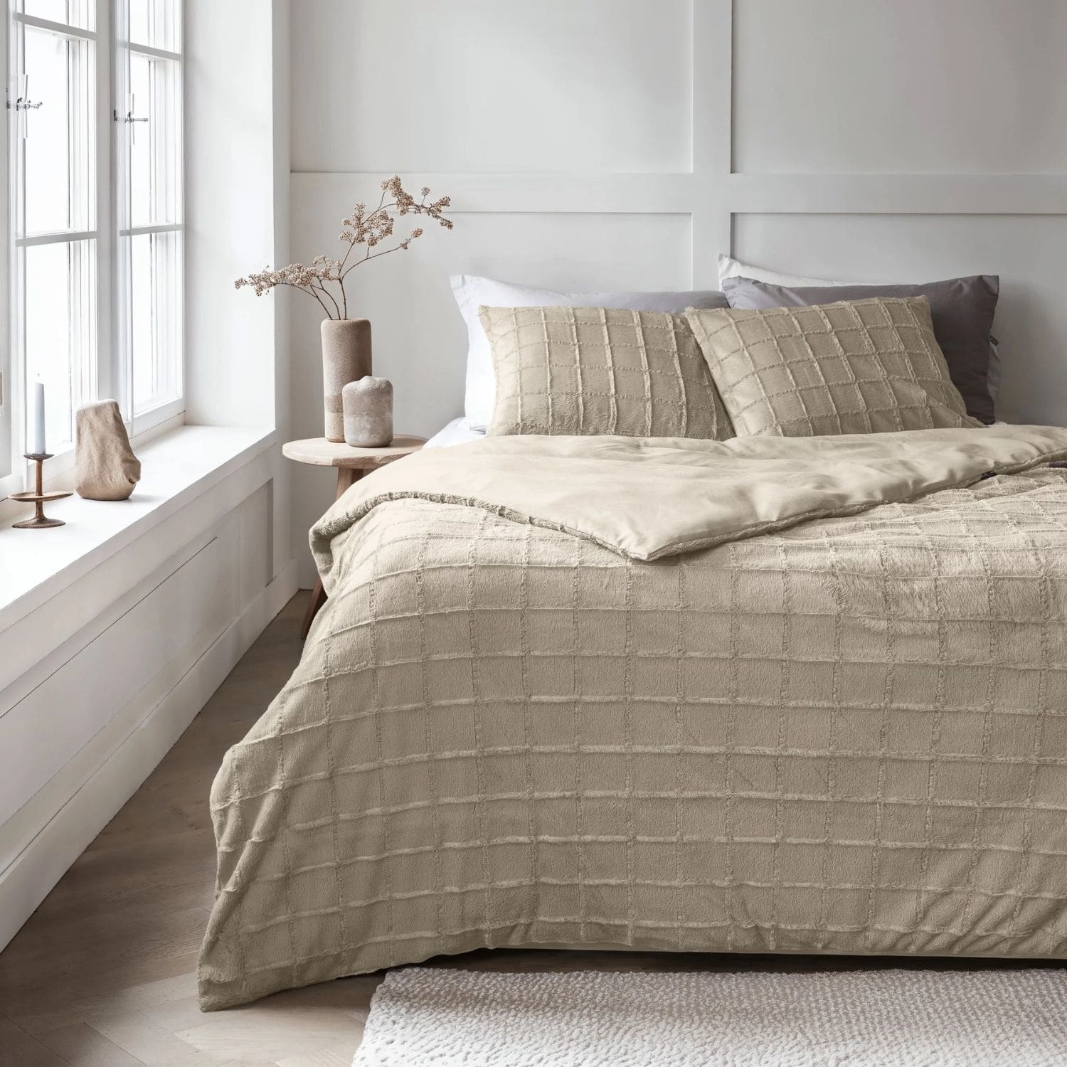 Sleeptime Teddy Dekbedovertrek Fur Check – 140×200/220 cm – Beige
