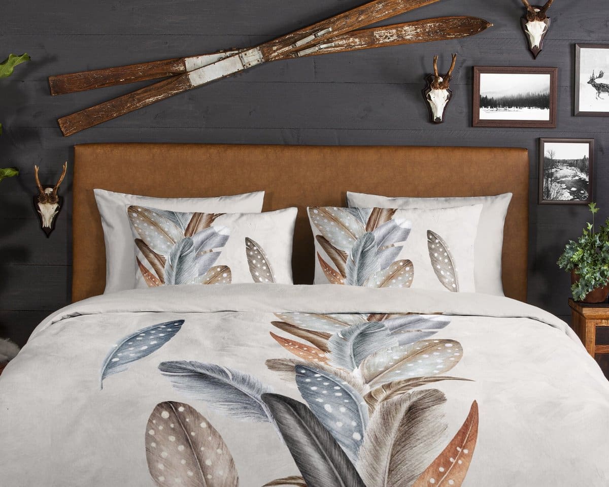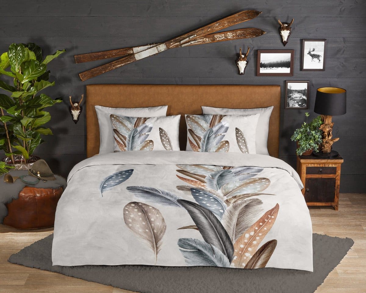 Breng warmte en stijl in de slaapkamer met het Good Morning Eina Flanel Dekbedovertrek Zand. Dit zandkleurige overtrek is versierd met een subtiele verenprint in bijpassende kleuren en heeft een effen zandkleurige achterzijde, waardoor het een rustige en stijlvolle uitstraling krijgt.