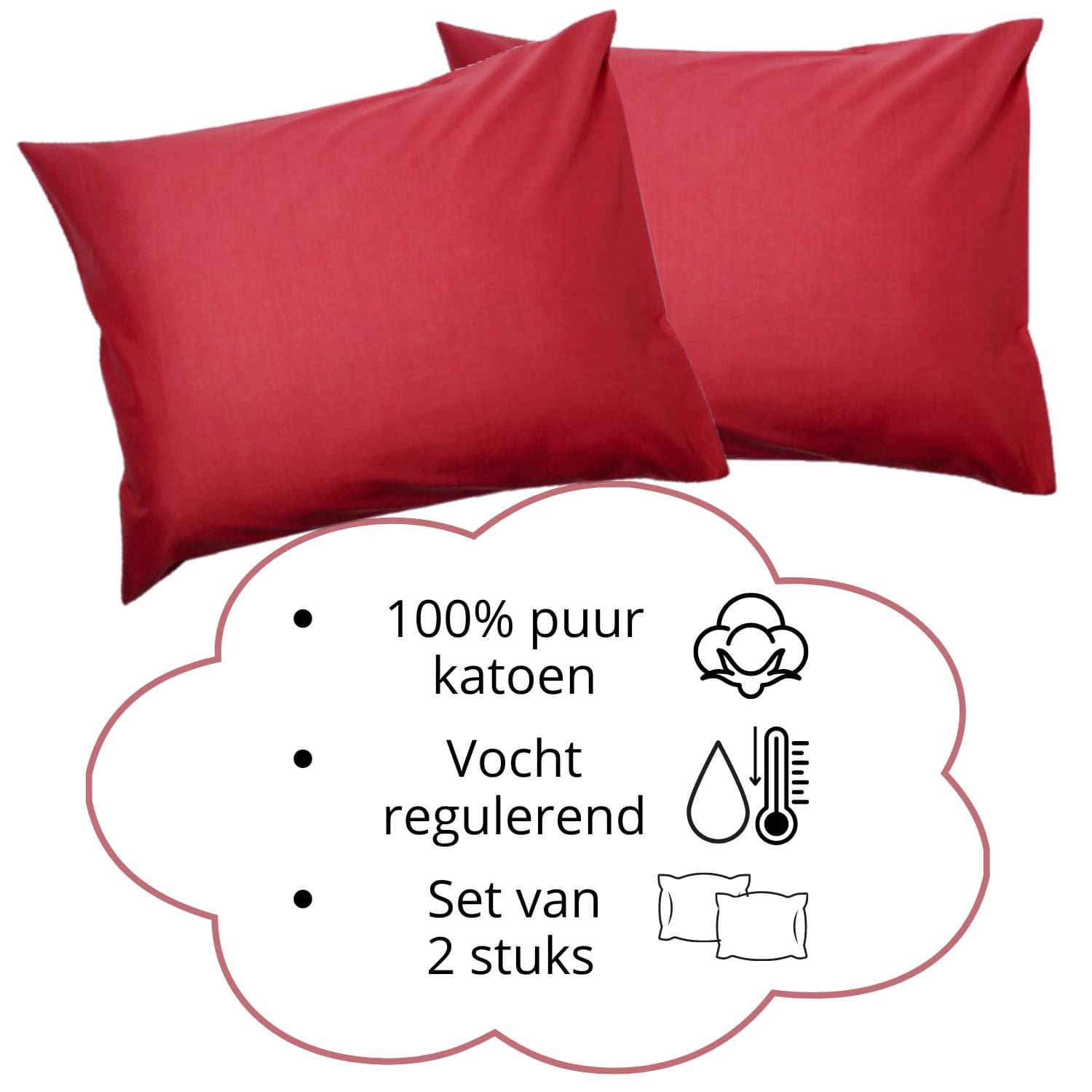 Droomtextiel Kussenslopen 60×70 cm Rood Set Van 2 Stuks – Hotelkwaliteit – 100% Hoogwaardige Katoen