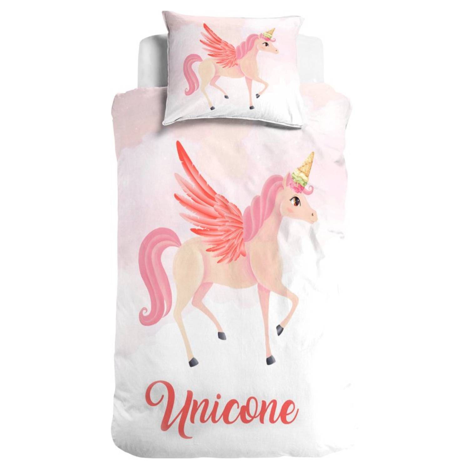 Met het Unicone dekbedovertrek investeer je in beddengoed van hotelkwaliteit: duurzame katoen ranforce, perfecte pasvorm, professionele afwerking en een fantasierijke unicornprint die je kind uitnodigt tot zoete dromen. Ervaar het zelf – jouw nachtrust (en die van je kleine) verdient dit.