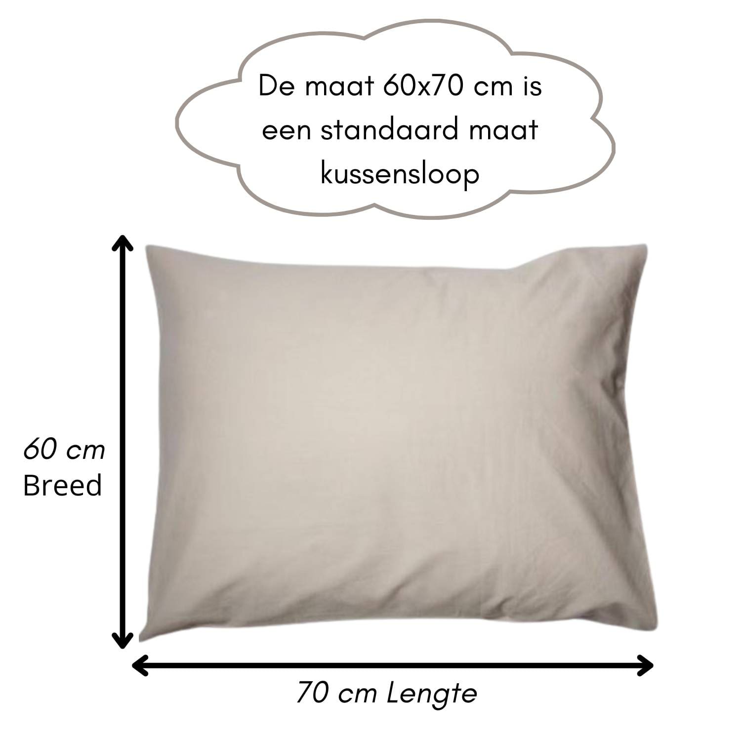 Antwoord: Ja, dankzij de standaardafmeting van 60×70 cm met envelopsluiting past het kussensloop perfect op vrijwel elk hoofdkussen.