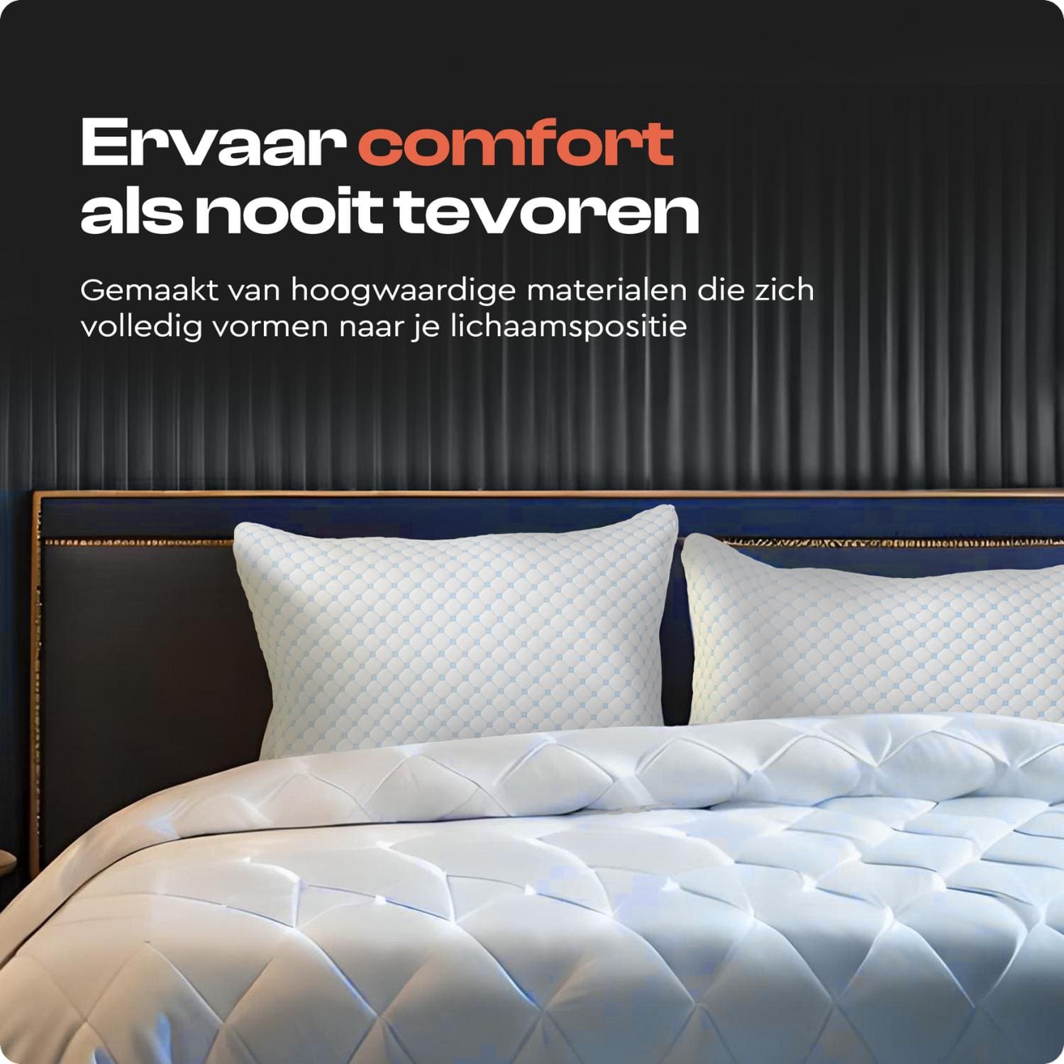• Duurzaam materiaalgebruik: Onze memory foam met nanotechnologie gaat jarenlang mee, terwijl de wasbare tussenhoes je kussen altijd fris houdt.