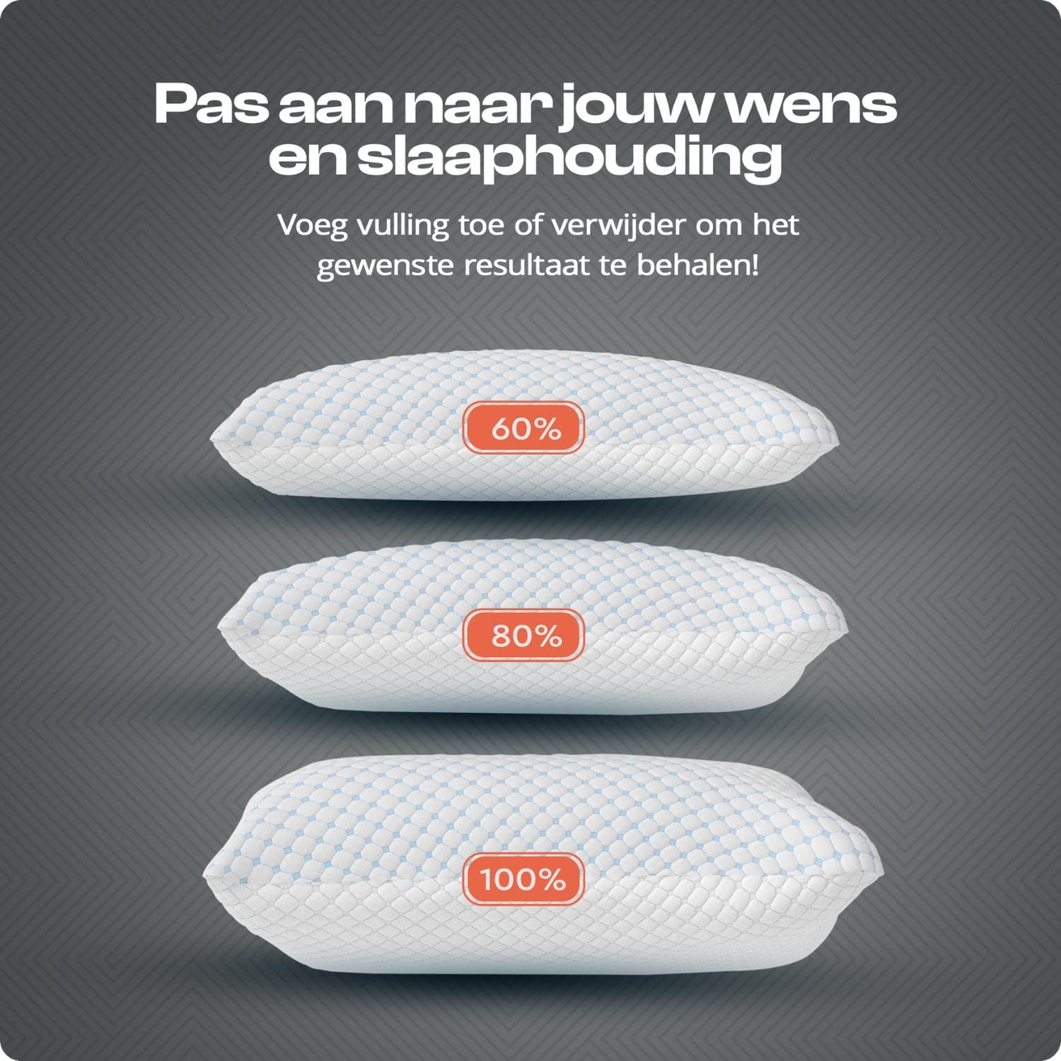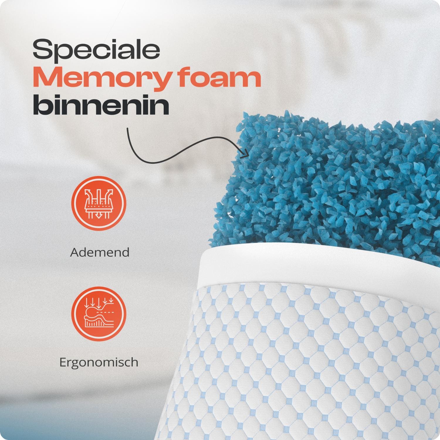 • Vulling: Hoogwaardig memory foam met nanotechnologie, verstelbaar in dikte en stevigheid