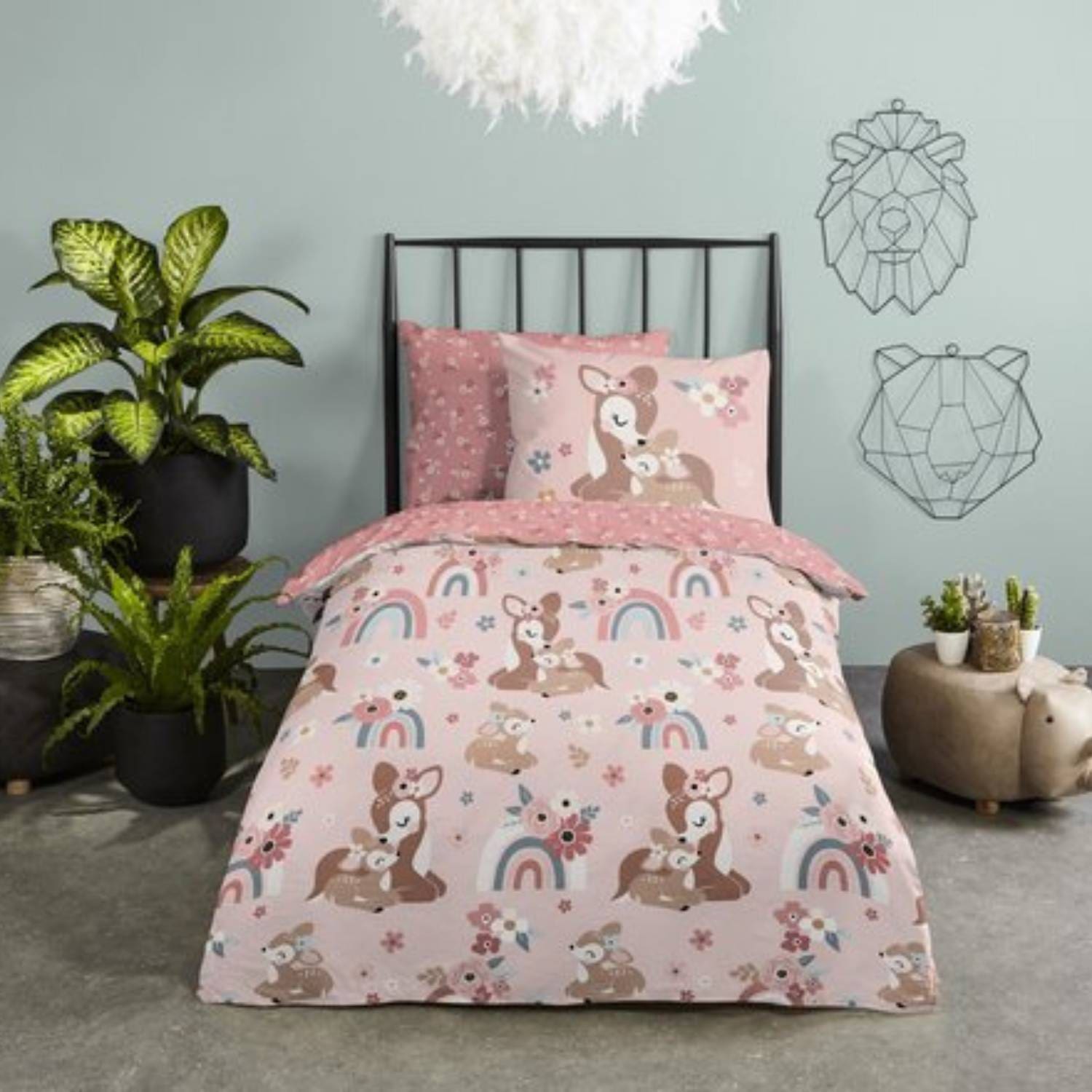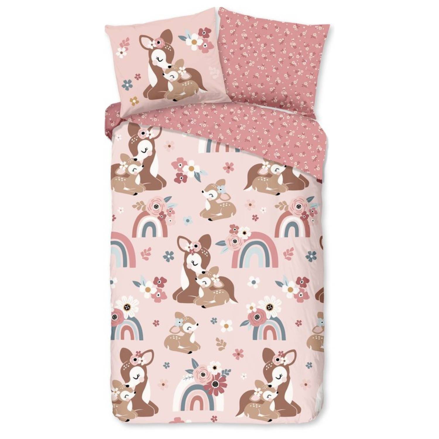 Good Morning Kinderdekbedovertrek bambi hert met regenboog – Roze – 140×200/220 cm – Katoen