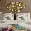 Het dekbedovertrek “Verde” heeft een verfijnd dessin van bloemen en vogels in de zachte kleur “Zand”. Aan de achterkant vind je een bijpassende uni-tint, zodat je af en toe een rustig contrast kunt creëren. Dankzij de luxe bies (piping) rondom elke kussensloop en het dekbedovertrek straalt jouw slaapkamer professionaliteit en stijl uit – net zoals een vijfsterrenhotel.