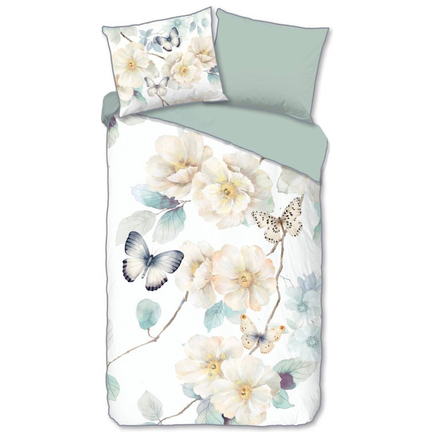 Satijnen dekbedovertrek “Adiwanya” van Descanso. Dit stijlvolle dekbedovertrek met bloemen en vlinders, in de kleur “Wit” is gemaakt van 100% katoen-satijn. Descanso dekbedovertrekken zijn luxueus, stijlvol en elegant! Aan de achterkant van een Descanso dekbedovertrek zit altijd een mooie, bijpassende uni kleur. Dekbedovertrekken en kussenslopen van Descanso zijn rondom voorzien van een luxe bies/ piping in een bijpassende kleur. Een Descanso dekbedovertrek geeft een luxe uitstraling aan uw slaapkamer!