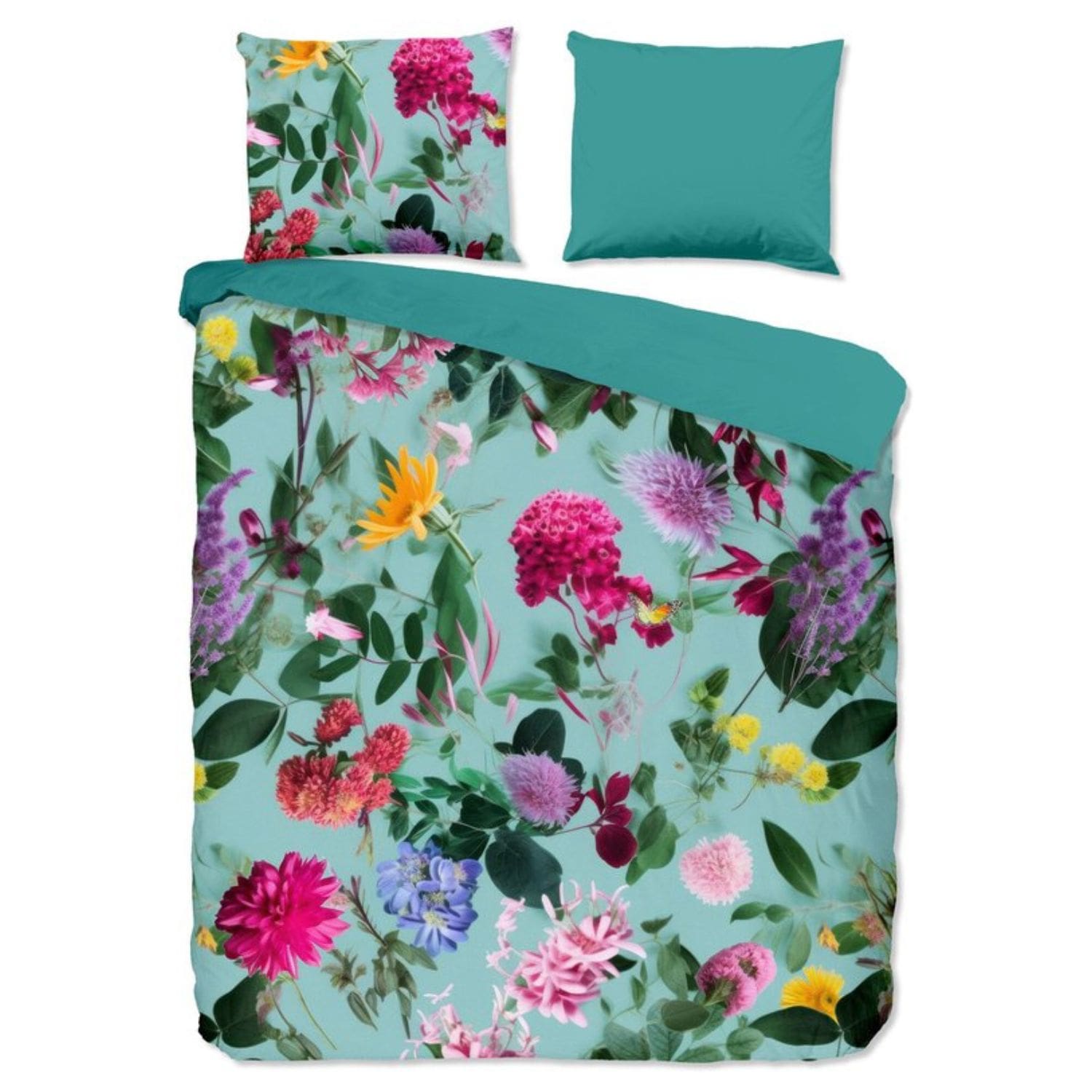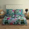 Dankzij deze eigenschappen voelt het beddengoed aan als een luxe katoenen hoeslaken hotelkwaliteit, zonder in te boeten op duurzaamheid. De bijzondere weving en afwerking zorgen voor een fluweelzachte touch, terwijl de bloemenprint in aqua subtiel schittert op je bed.